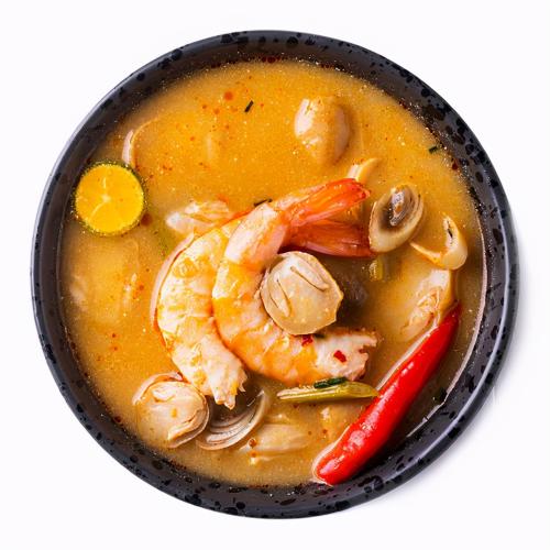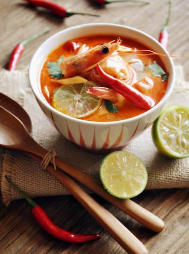 冬陰功湯是泰國最具有代表性的"國湯"。"冬陰"在泰語裡有酸辣的意思,而"功"其實指的就是蝦的意思,所以通俗來講,"冬陰功"也就是"酸辣蝦湯",是以蝦為主要原料,配以香料和椰汁熬製,在馬來西亞、新加坡、印尼等東南亞國家深受歡迎,人們也常常做成"冬陰功面",酸辣味加鮮甜味,超好吃。