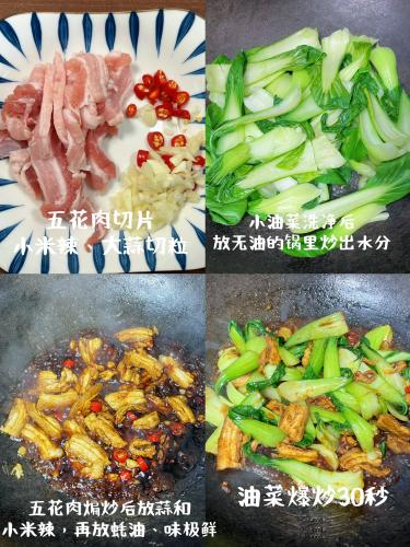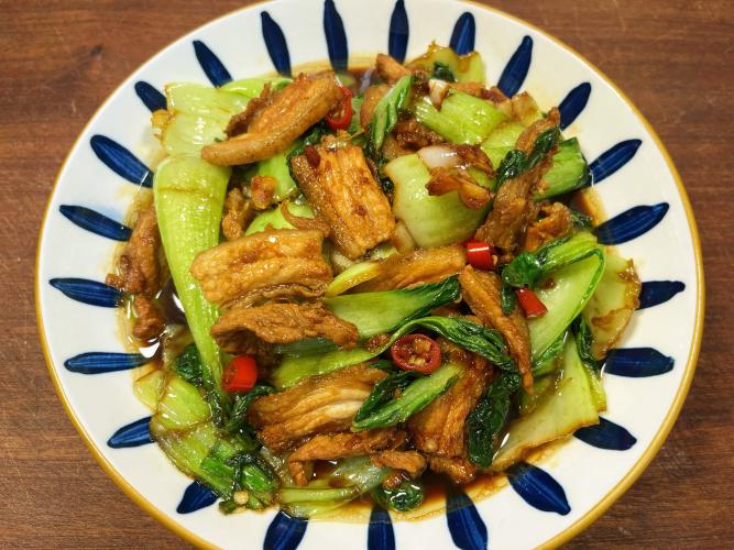 五花肉炒油菜:豬油渣的香+油菜的甜,葷素搭配的天花板,菜湯泡飯一絕!