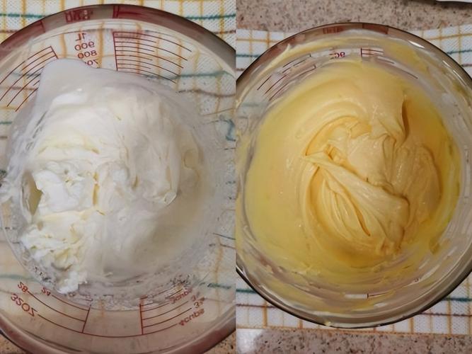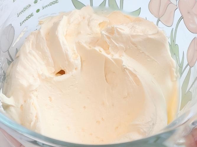 開始做提拉米蘇餡:蛋黃砂糖先用打蛋器打發好,放乳酪放淡奶油,膠鏟不斷攪和均勻,呈現圖中這個樣子的時候,就可以放入裱花袋裡面了。