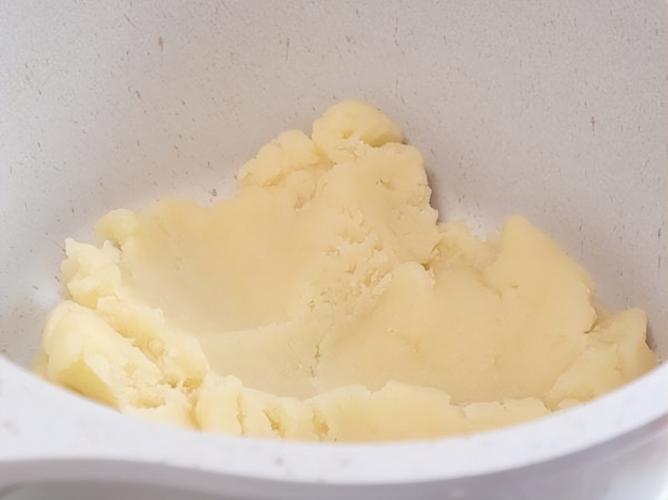 沒有乾粉的麵糊糊要先晾成常溫,隨後往裡面放蛋液,但是不要一次性加進去,分批然後攪拌至它粘稠,放入裱花袋裡擠出來可以立住既不幹也不至於特別稀。